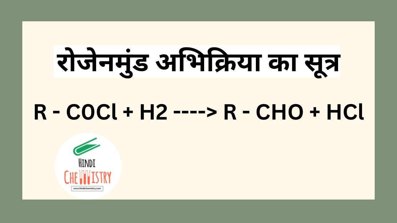 दोस्तों स्वागत है आपका हमारी हिंदी केमिस्ट्री की इस वेबसाइट पर। आज के इस आर्टिकल में हम आपको रोजेनमुंड अभिक्रिया या रोजेनमुण्ड अपचयन अभिक्रिया क्या है? इसके बारे में विस्तार के साथ बताएगे। यह एक बहुत ही महत्वपूर्ण टॉपिक है इस टॉपिक के बारे में परीक्षाओं में पूछ लिया जाता है। इसलिए इस टॉपिक के बारे में केमिस्ट्री के सभी स्टूडेंट्स को पता होना चाहिए। आप को इस आर्टिकल में रोजेनमुंड अभिक्रिया से सम्बंधित सभी जानकारी जानकारी प्रदान करा दी जाएगी। इसलिए इस टॉपिक को अंत तक जरूर पढ़ें। ताकि यह टॉपिक आप को अच्छे से समझ आ सके।